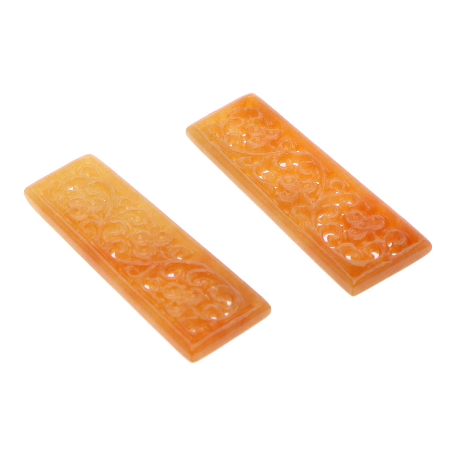 - Produced with natural type A orange jadeite jade mined in Myanmar.