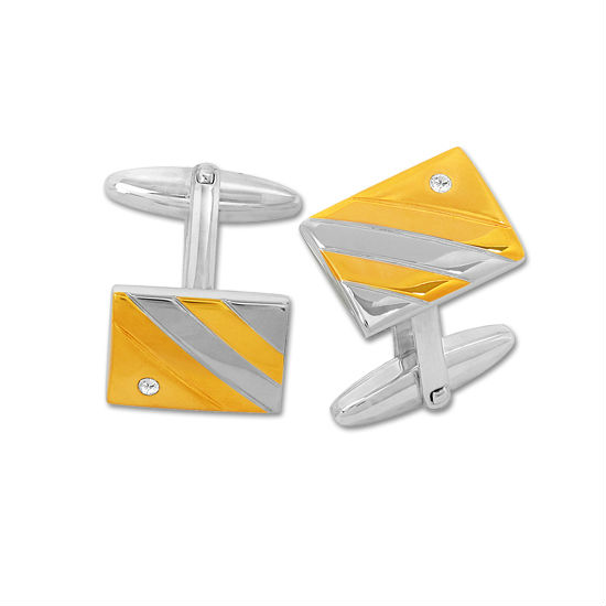 Up the stylish factor with this set of rectangle cufflinks in superb craftsmanship. The tasteful design spotlights diagonal striped details across the corners, while a glistening round stone accent adds glitz and glamor to the accessory. Plated with two tones, this cufflink looks like an upmarket choice no doubt.