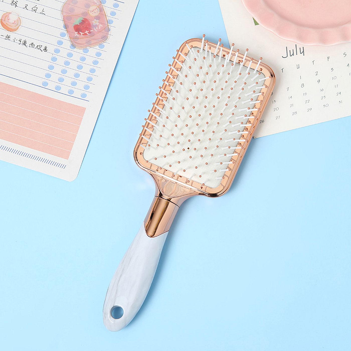As shown is a high-fashion hair accessory jewelry rectangle style hair brush.