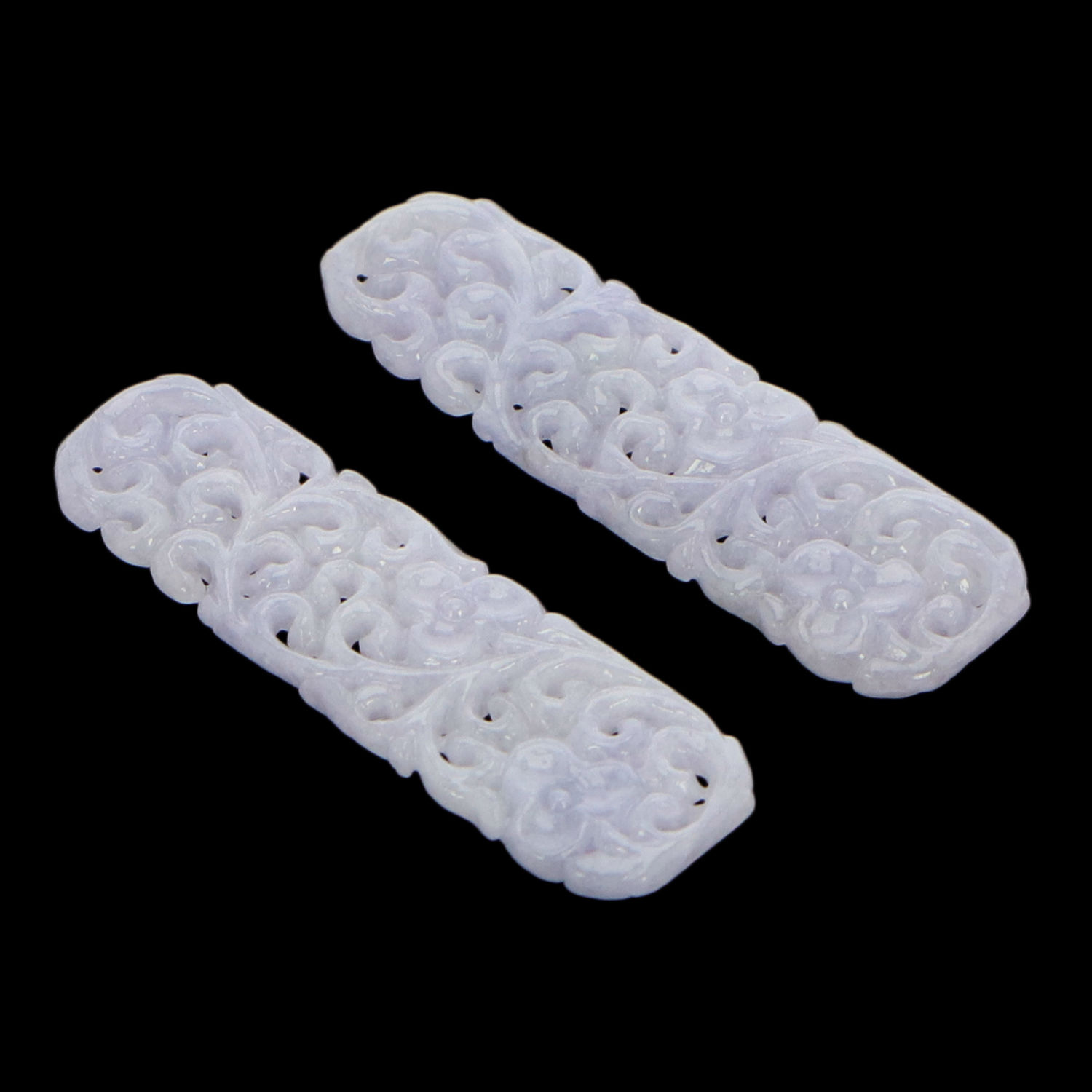 Elevate your curations with these lavender jadeite jade earrings. Fashioned into an elongated, rectangular shape, these earrings are handcrafted with elegant swirls and floral patterns, so they seem like relics worn by Chinese royals eras ago. The radiating and alluring number can be teamed with tailored separates for a balanced look or paired with a flowy chiffon gown for an utterly feminine appeal.