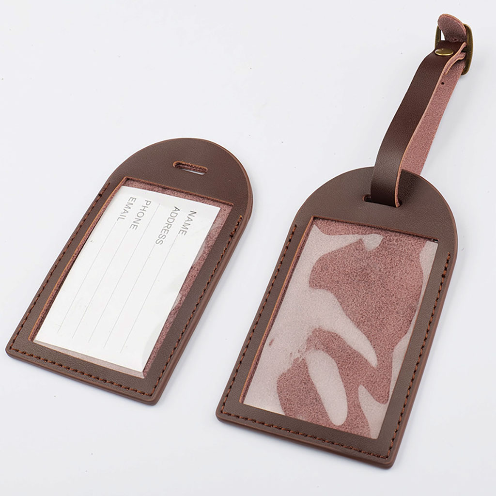 Rectangular-shaped Genuine Cowhide Leather Luggage Tag includes the following features :