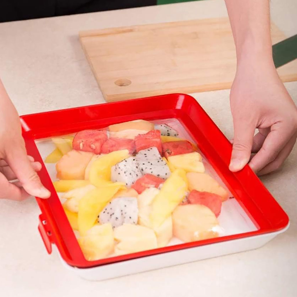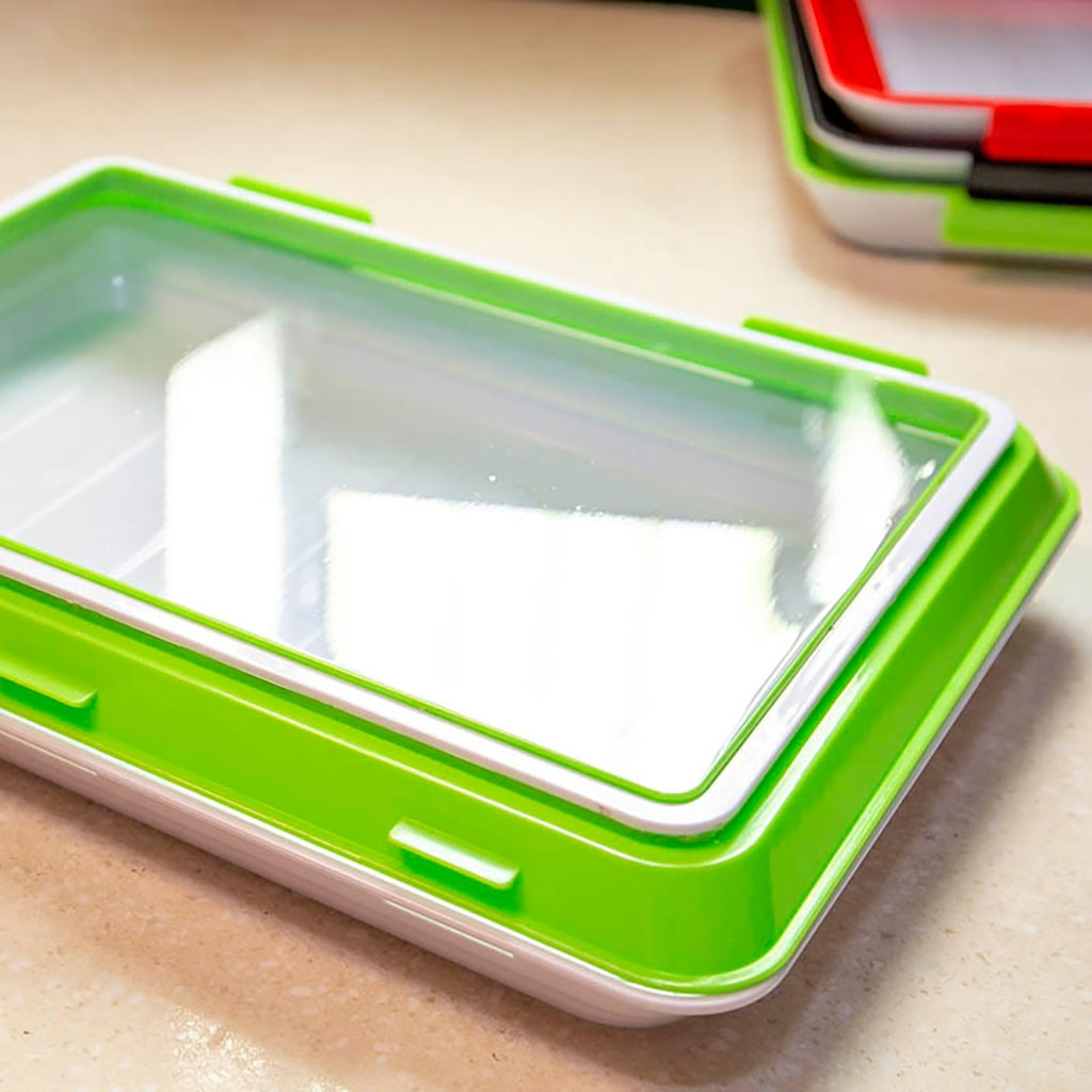 Rectangular-shaped Vacuum Seal Reusable Food Preservation Tray includes the following features :