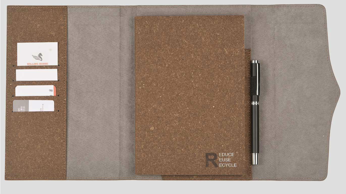 • Recycled leather notebook portfolio set. Client's own logo. It can come with the pen.