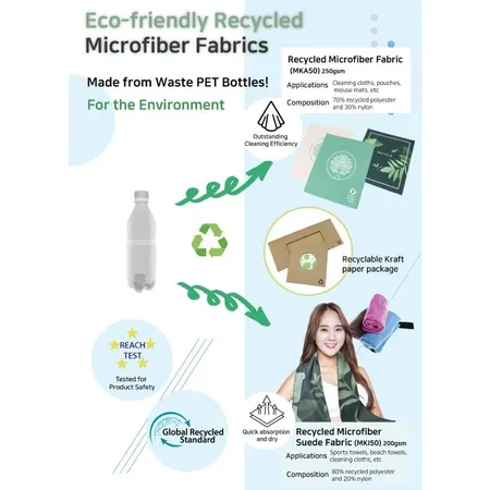 CMA's ecologically sustainable microfiber cleaning cloth made from post-consumer recycled PET materials has the same cleaning efficiency as an existing microfiber cleaning cloth and all the other products made with microfiber or glasses cases.