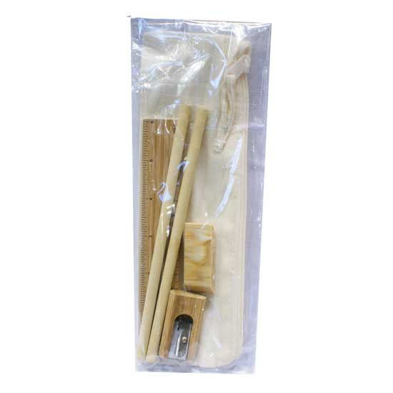 The recycled stationery set comes in various colors for your preference. It includes two recycled paper pencils, a bamboo ruler, a bamboo sharpener, a recycled eraser and a cotton pencil case. Get all the general stationery you need with just one purchase.