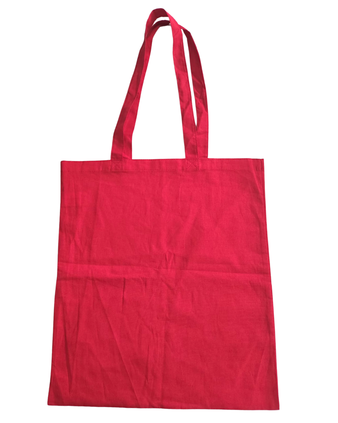 Red Red 100% Cotton bag with long handle. Size: 37x41x0 cm. Size: 37x41x0 cm / Handle: 2.5x64cm Cotton Self Handle. Print: W/o Print - Materials 100% Cotton, 120GSM. . Accessories tag,sattin label.