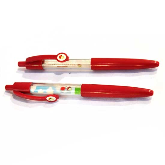 The red ball pen features colorful cartoon graphics for a lovely touch. The retractable design and the grip provide additional convenience for users. This red ball pen makes a great addition to your desk.