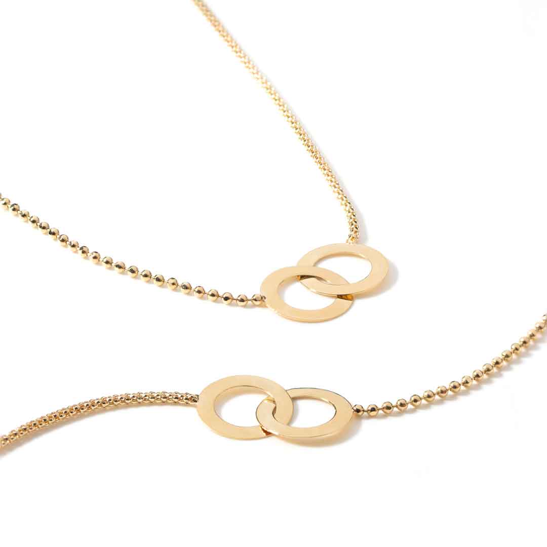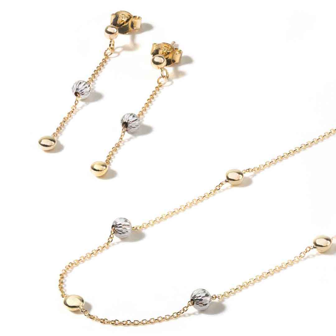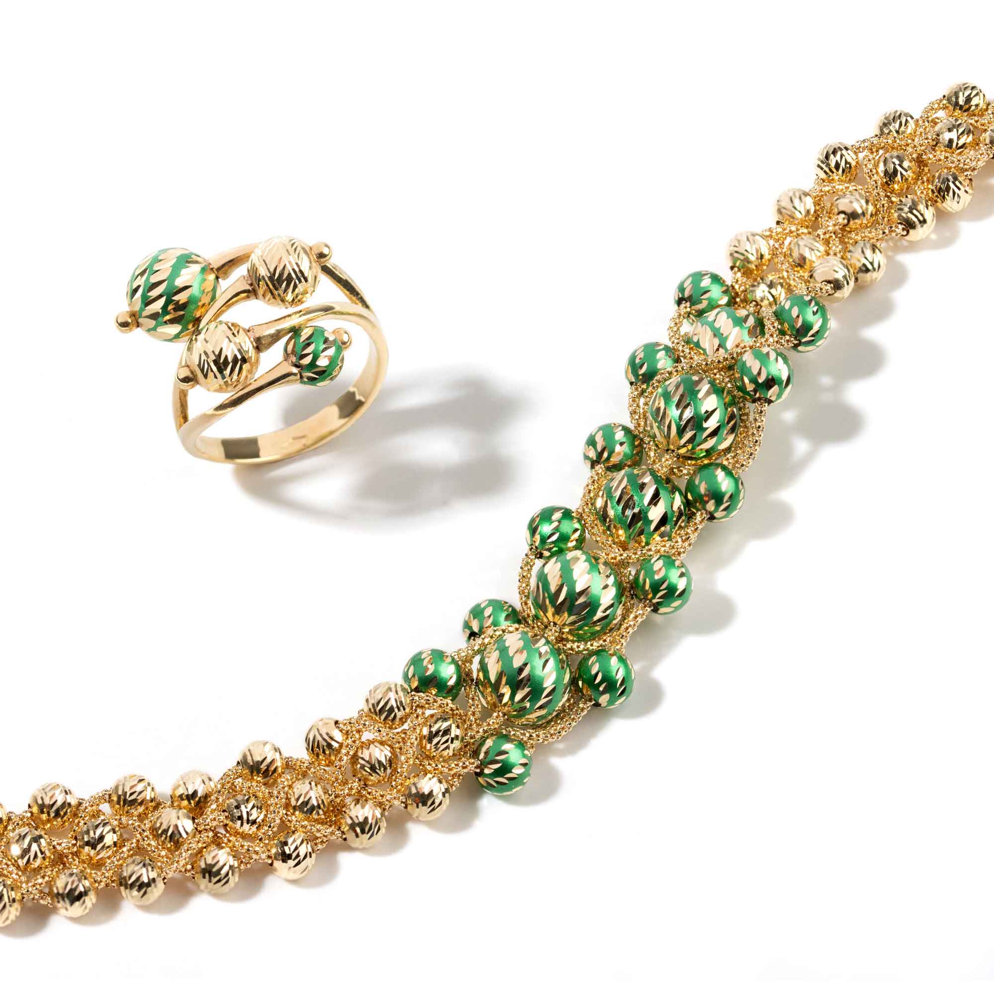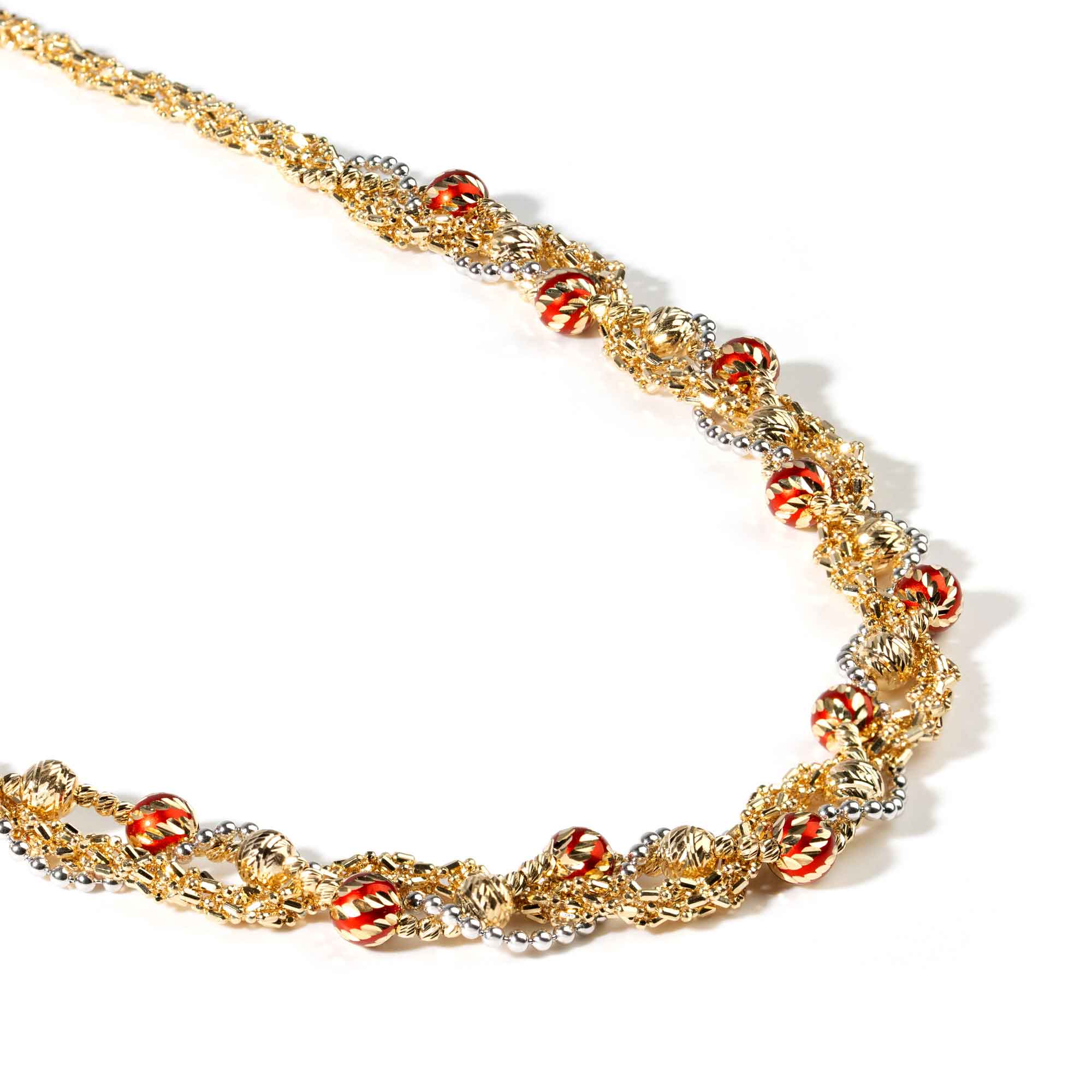 18 kt gold necklace with diamond cut gold beads and red enamel.