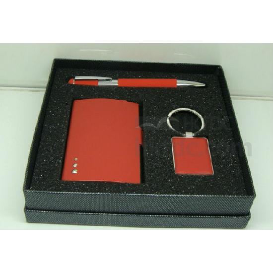 Red Color Gift Set Item (Name Card Holder, Pen and Keychain)