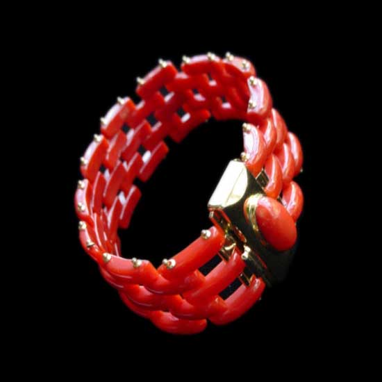 This captivating red coral bracelet flaunts a delicate link design with gold accents. From the selection of raw materials to cutting and carving them into beautiful creations we pay great attention. Our craftsmen bring together a blend of the old traditional techniques with the new, creating magnificent works of art.