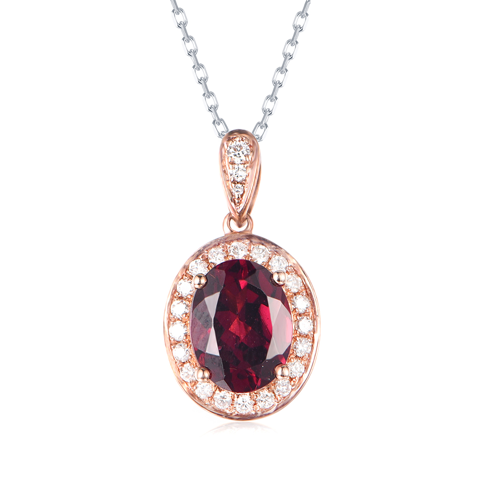 14K Rose Gold With White Diamond and Red Garnet Pendant