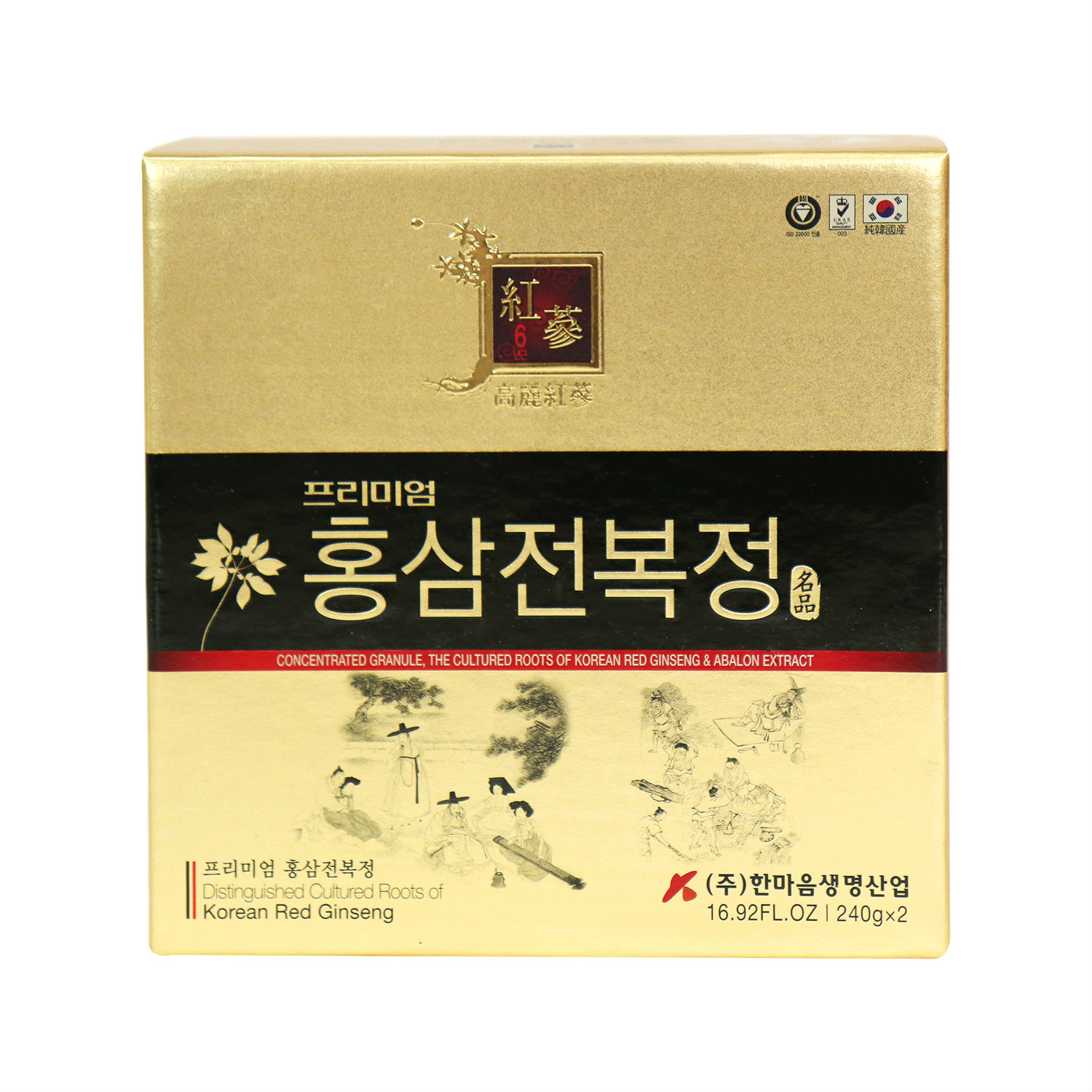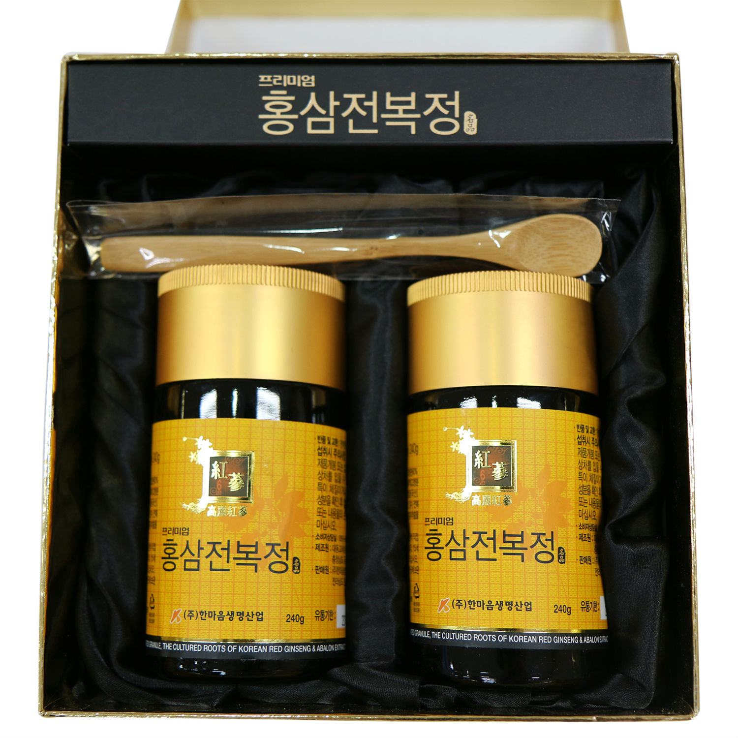 Boost your health with this box of red ginseng and abalone extract. The extract is mainly made from eco-friendly red ginseng and Wando abalone. Crudus, poria cocos wolf, wilfordi root and honey improve the taste and effectiveness. Each gift box comes with 2 bottles of extract and a spoon. This red ginseng and abalone extract is a perfect choice for birthday gifts to parents or grandparents.