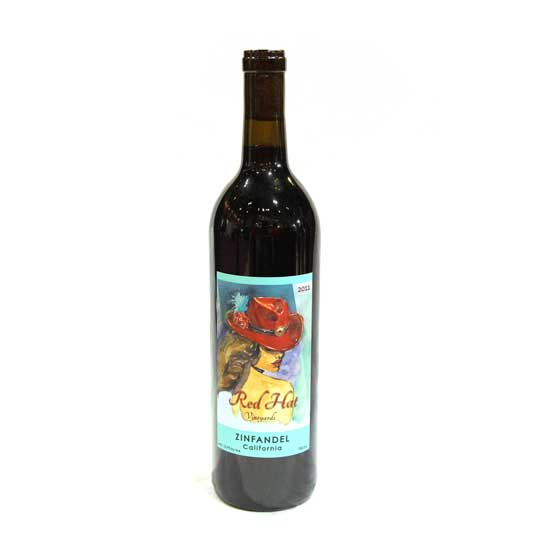 This is a bottle of Red Hat Vineyards Zinfandel from California, USA. With an alcohol level of 13.7%, this red wine is dry, with mild tannins. This 2011 table wine is aged for 18 months.
