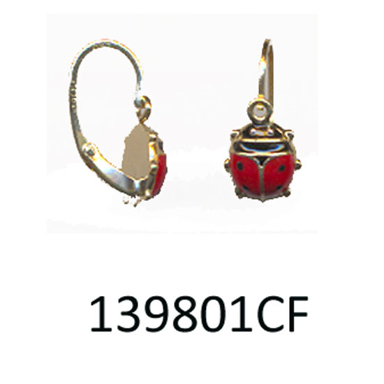 This is a pair of ladybug earrings in a yellow gold setting. The red and black enamel details embody the vividness of the ladybugs. The ladybug earrings are specially designed for girls.