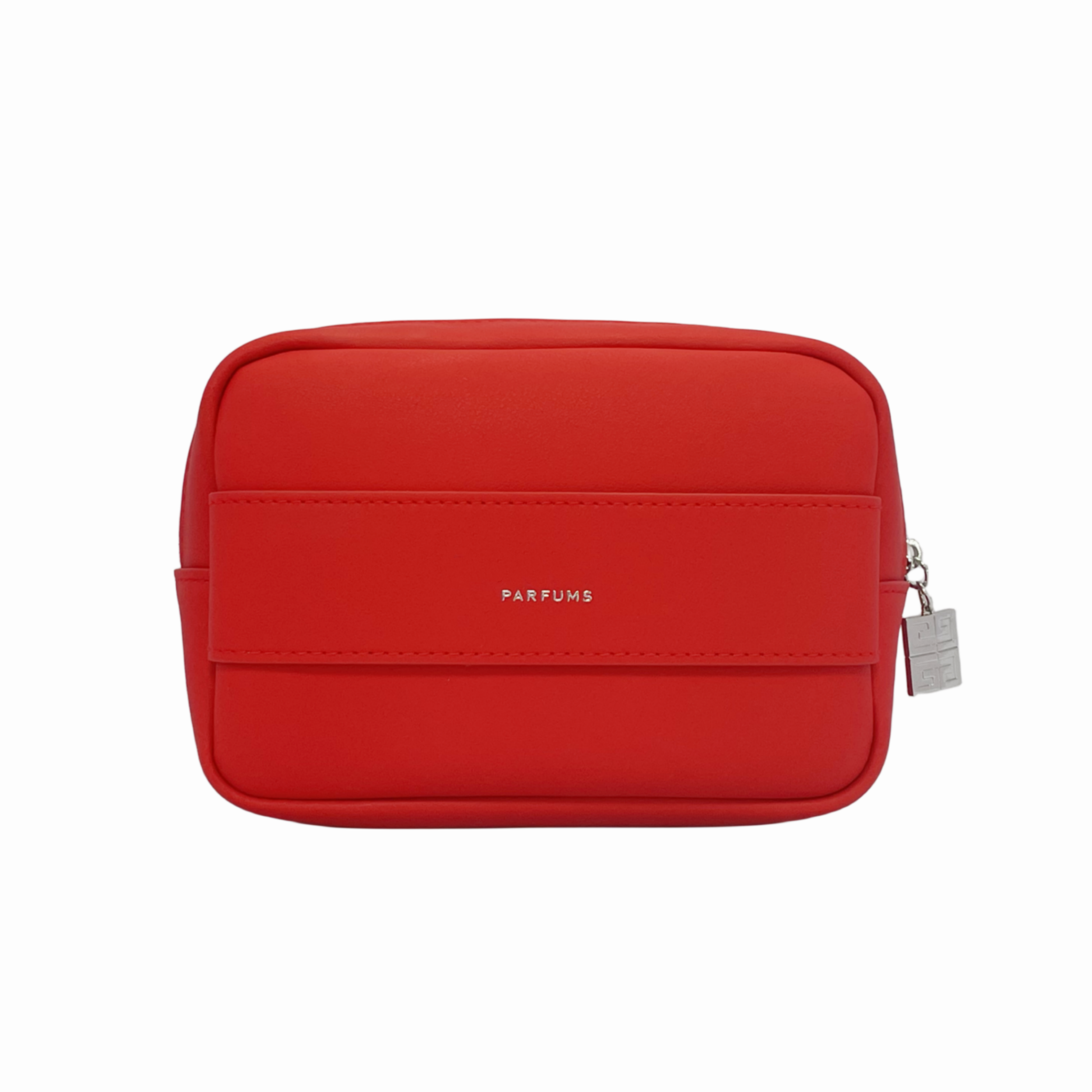 Whether you're looking to promote your brand or give a thoughtful, stylish gift, this red vegan leather cosmetic pouch is the ideal choice for a functional, fashionable, and sustainable option.