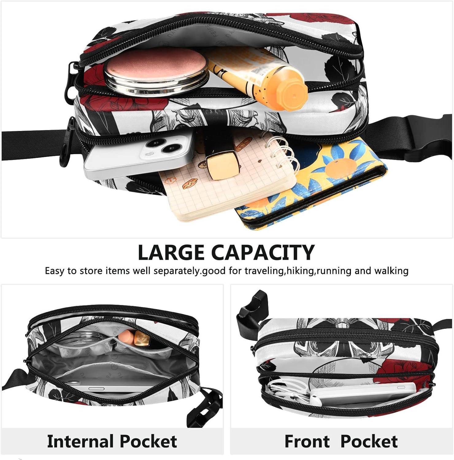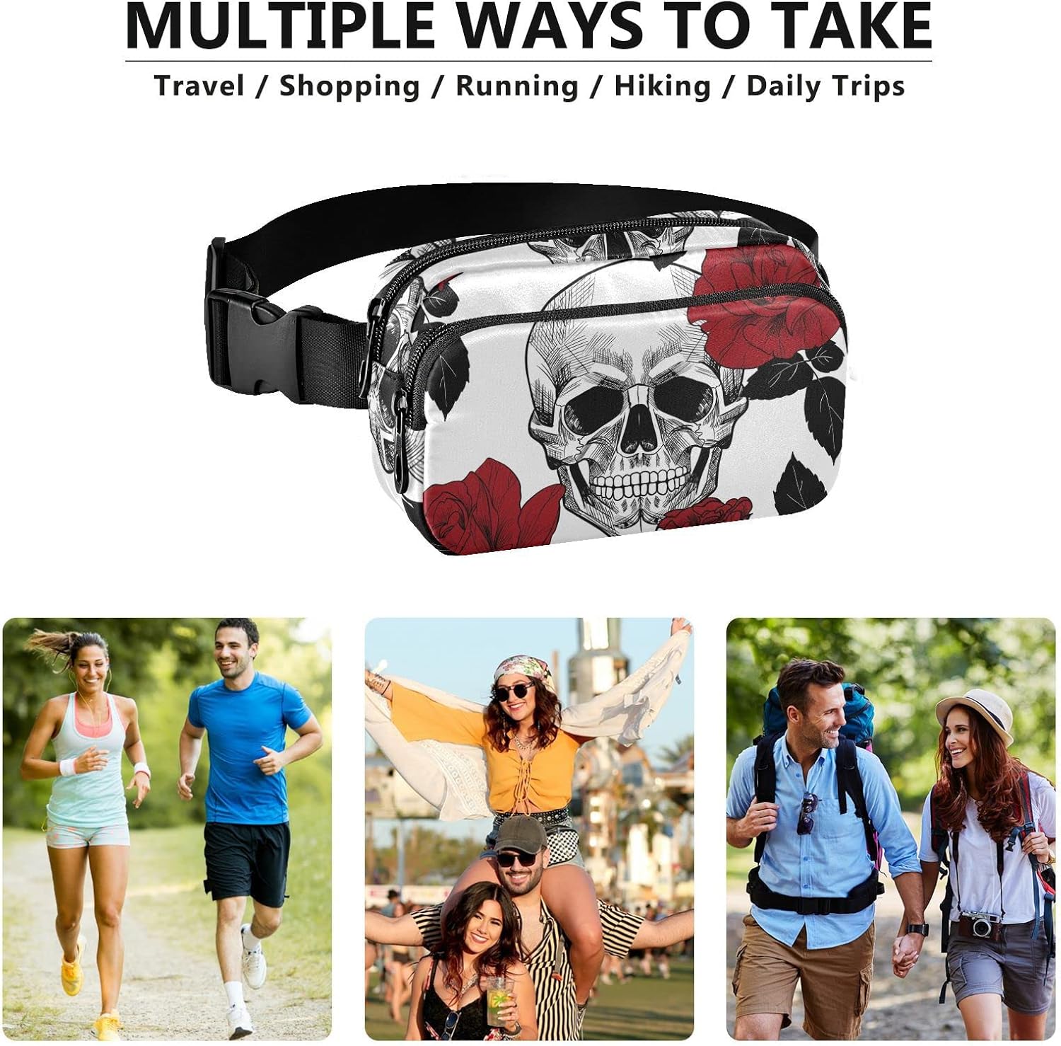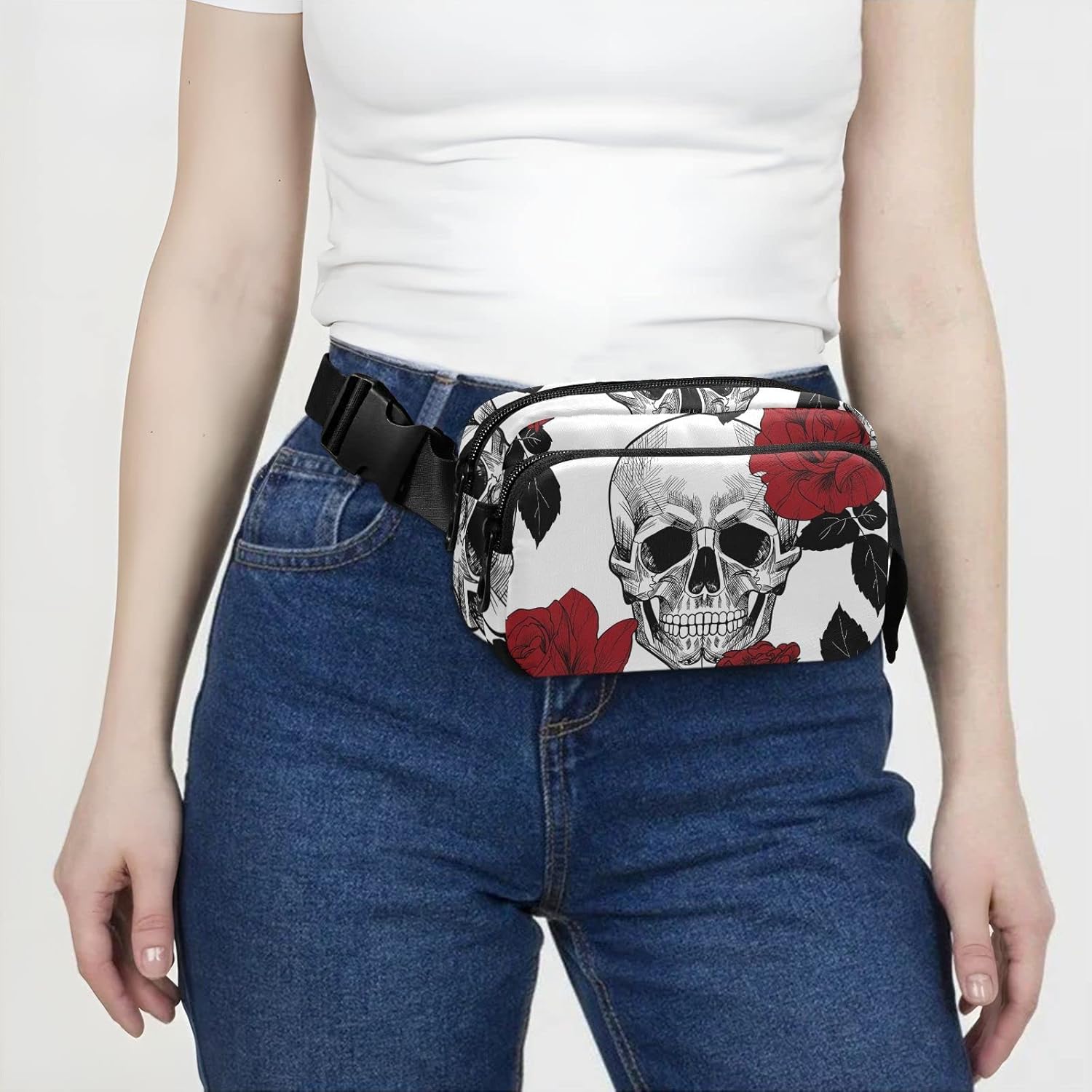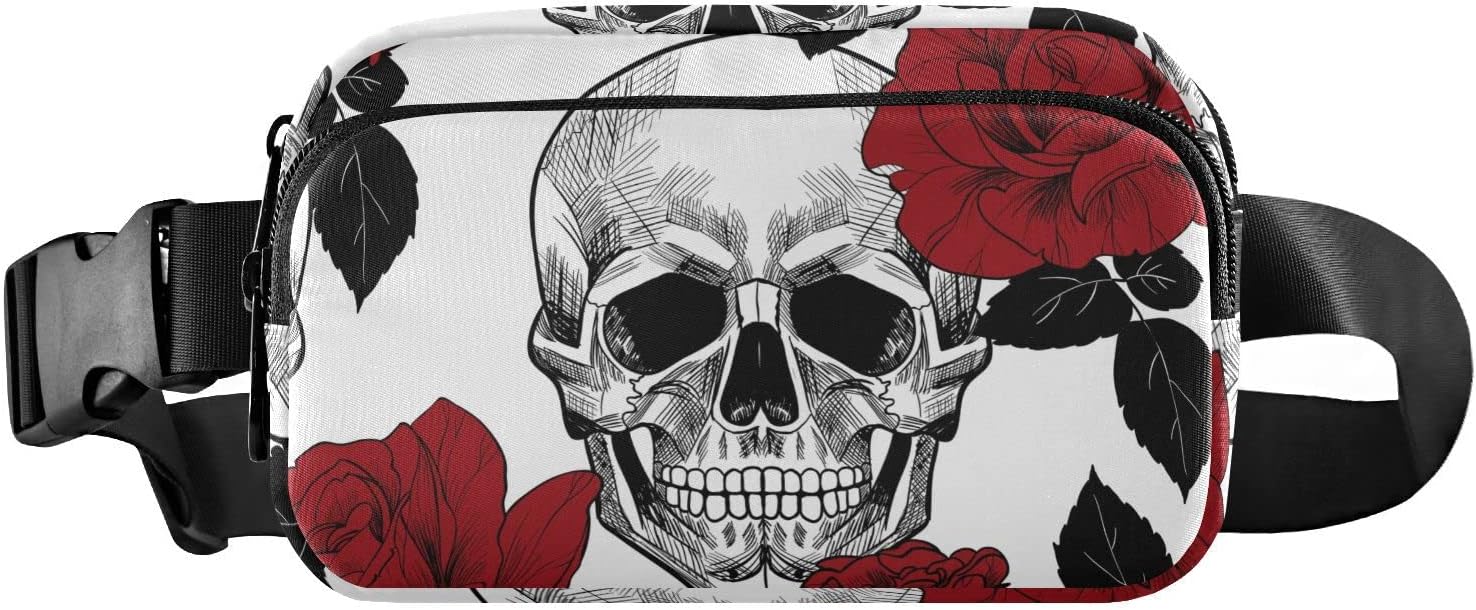 Red Rose and Skull Fanny Pack