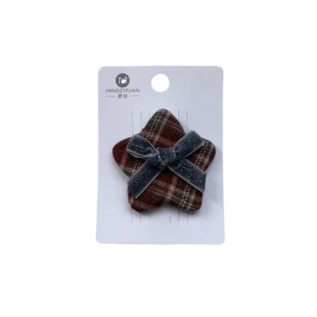 Red checkered bow, star shaped children's hair clip, British college style girl's hair clip, high-end bangs headband accessory