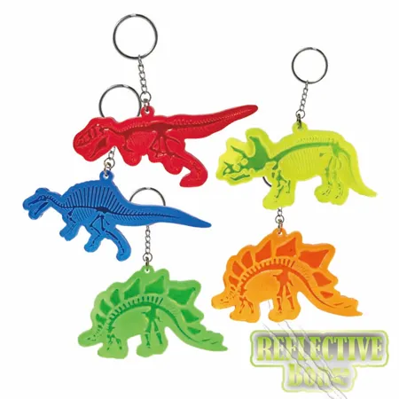 Embossed reflective dinosaur keychain with soft and bendable features!