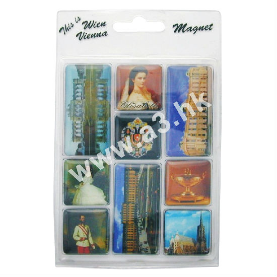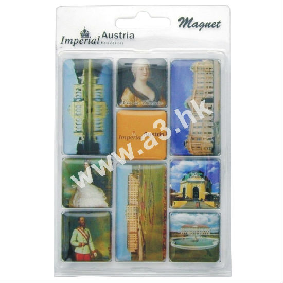 This epoxy magnet comes in a set of nice pieces vibrantly printed in full-color. Each magnet features an Austria’s imperial attraction image on the front. This magnet set can be stuck onto metal surfaces to decorate refrigerators, cabinets, tablets or other home appliances.