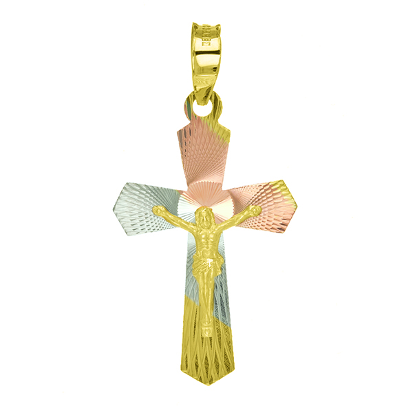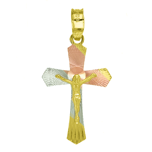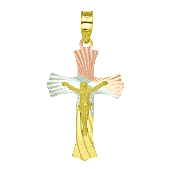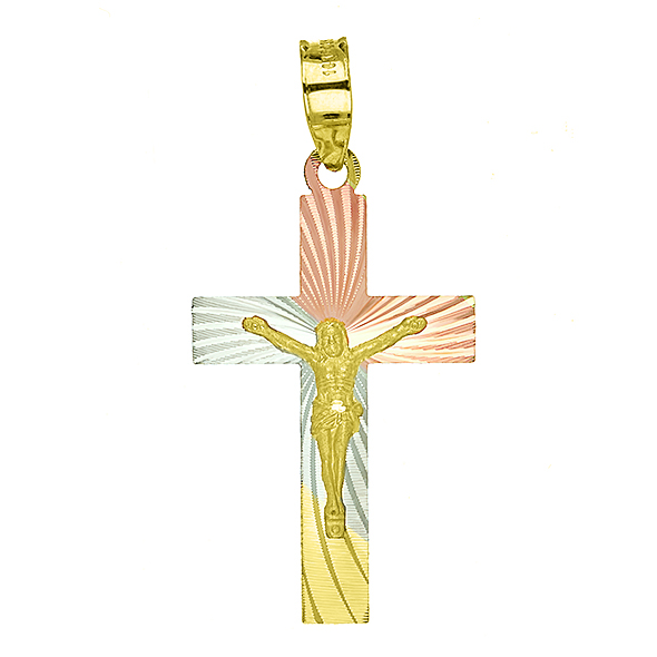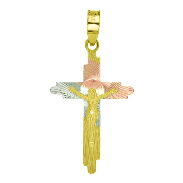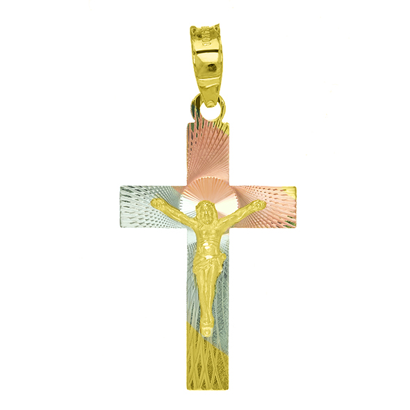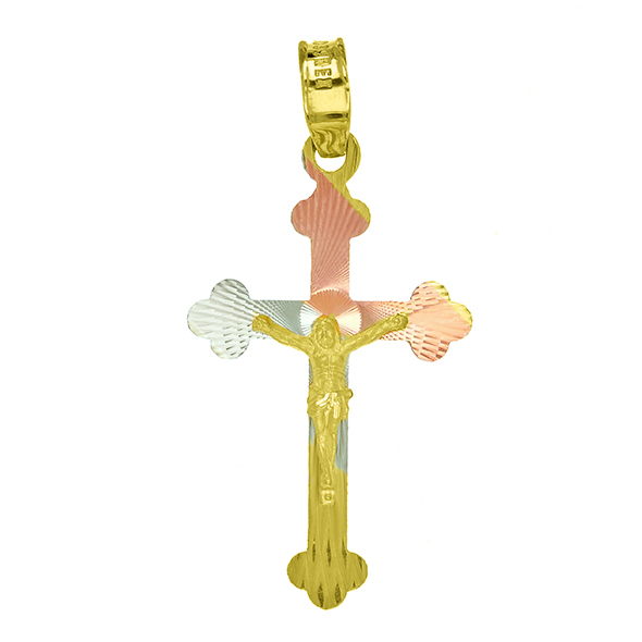Our designs variety in tricolor and yellow gold crosses, in the example images you can see that we have several styles as well as sizes, which are: