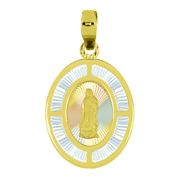 An oval 17 mm cap medal with Baguette CZ whether it's white or tricolor with you preference figure (for example: Guadalupe, The Sacred Face, Baby jesus, San Judas, The Holy spirit, etc).