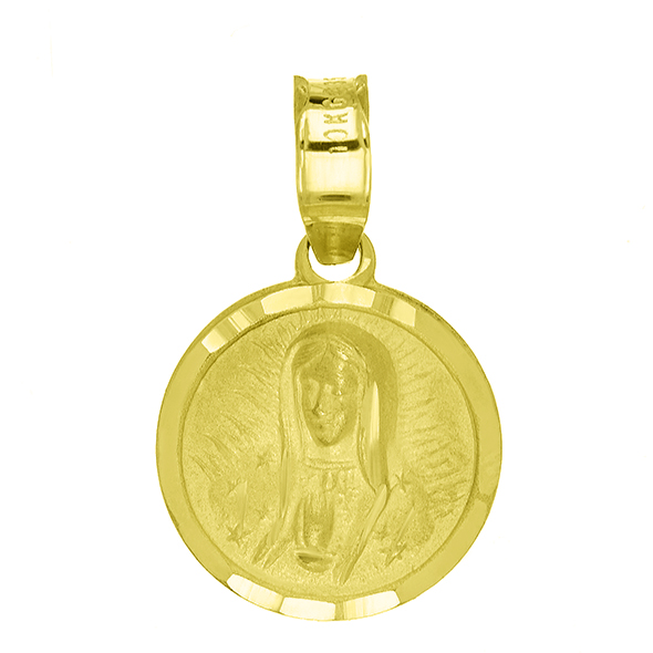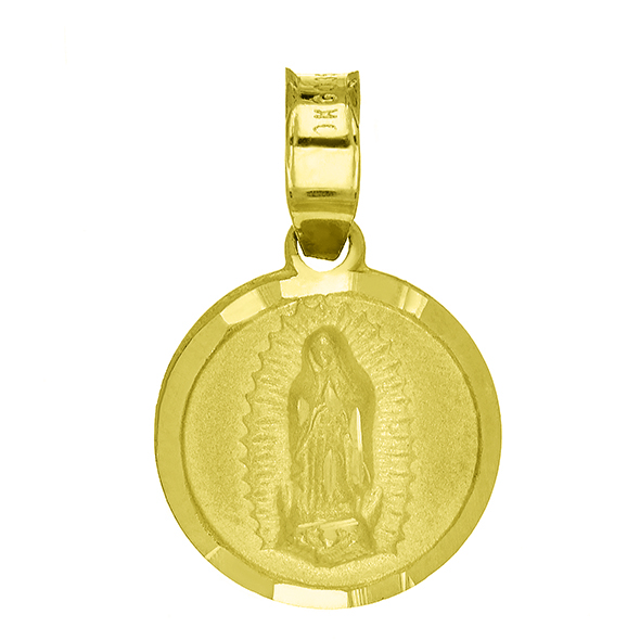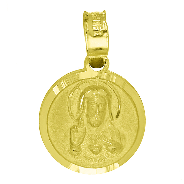 Religious yellow casted medal which can be made in 10k, 14k, 18k and 21k fine gold. On it, you get to choose your preferenced image wheter it be The Sacred Heart, Guadalupe, Christ or Guadalupe face.
