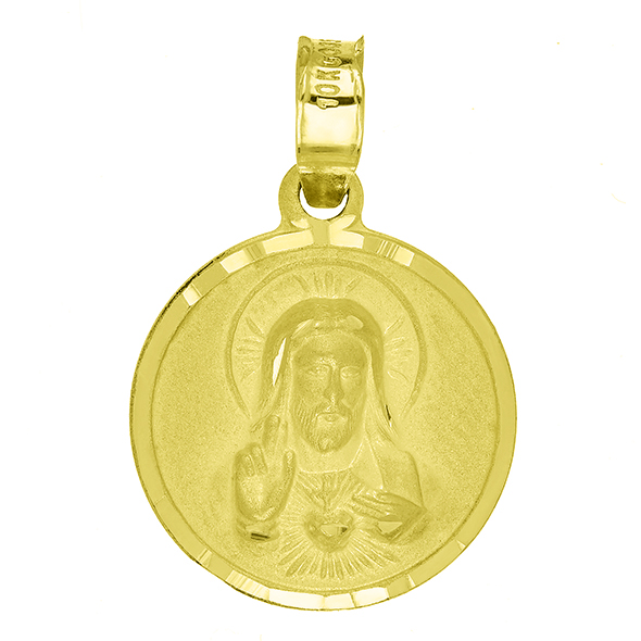 Religious yellow casted medal which can be made in 10k, 14k, 18k and 21k fine gold. On it, you get to choose your preferenced image wheter it be The Sacred Heart or Guadalupe.