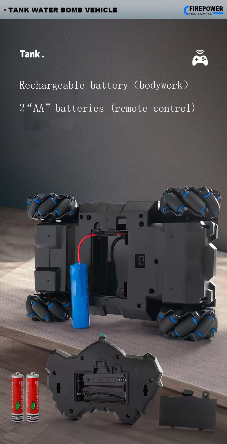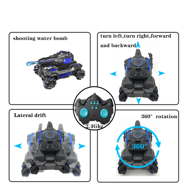 shoot the water bomb,automatic presentation,trun left/right,forward,backward,360°drift