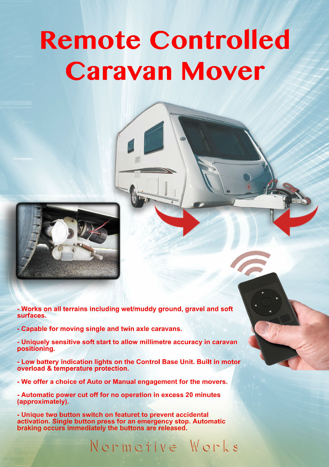 Uniquely sensitive soft start to allow millimetre accuracy in caravan positioning.