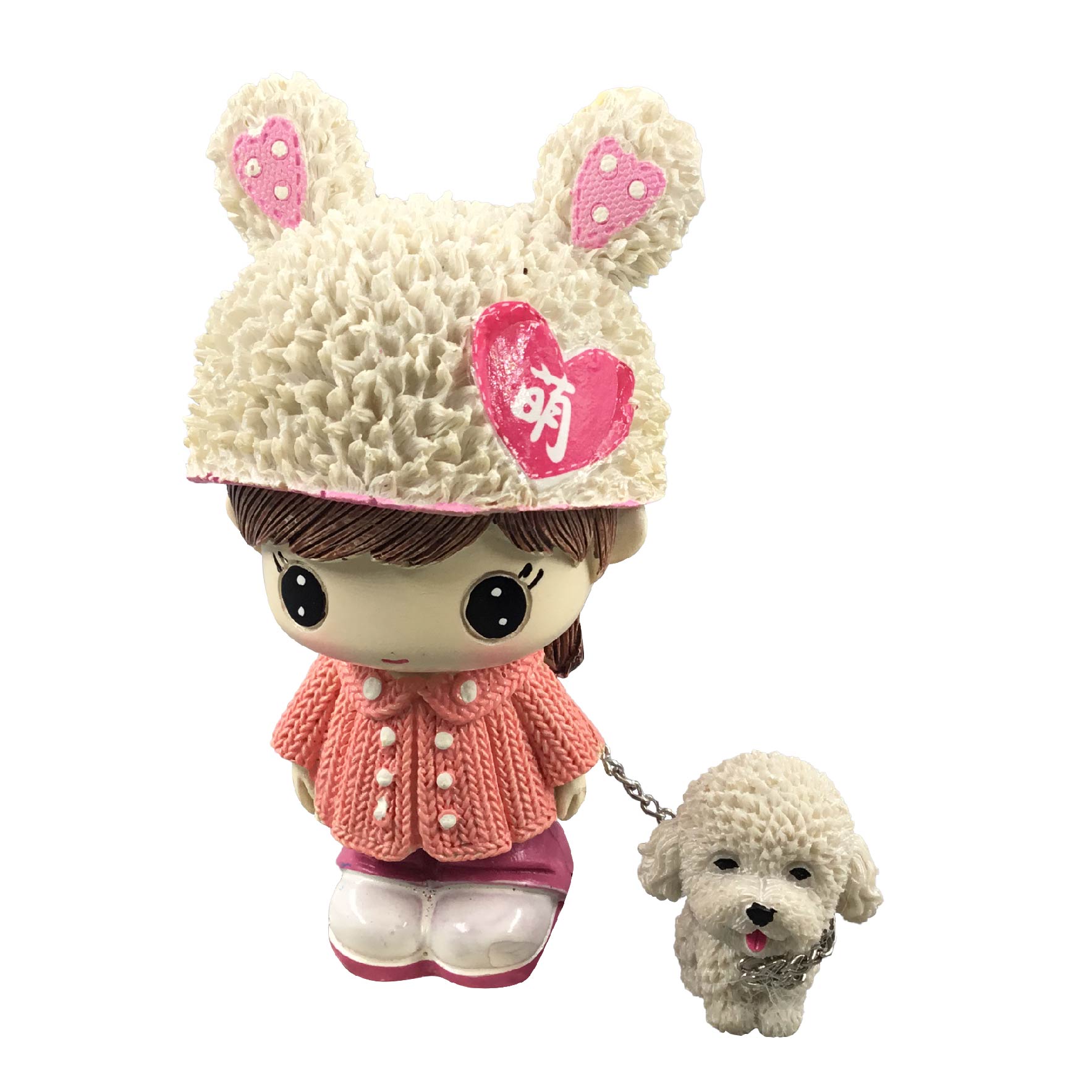 • Item Name: Resin Cute White Bunny Ears Hat Girl Figure  With Dog