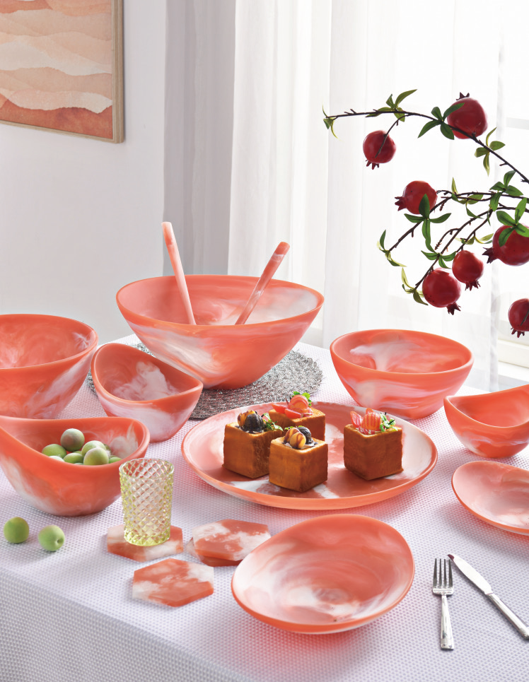 Unique crafted look and attractive color hue make the resin dinnerware a perfect addition to party tables, buffets and special occasions. Fashioned with asymmetric shape and smoky patterns,these offer a timeless look and appeal, and bring a special touch to your table and home.