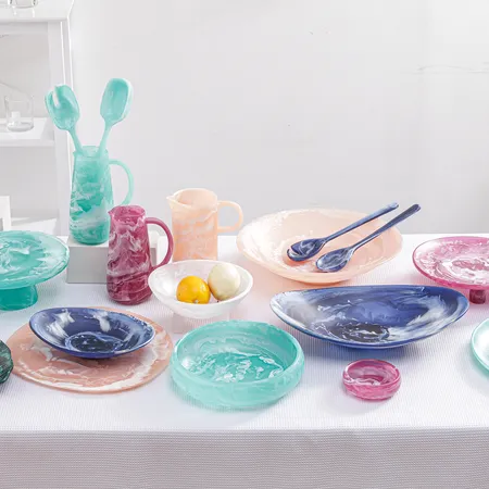 Unique crafted look and attractive color hue make the resin dinnerware a perfect addition to party tables, buffets and special occasions. Fashioned with asymmetric shape and smoky patterns,these offer a timeless look and appeal, and bring a special touch to your table and home.