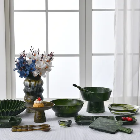 Unique crafted look and attractive color hue make the resin dinnerware a perfect addition to party tables, buffets and special occasions. Fashioned with asymmetric shape and smoky patterns,these offer a timeless look and appeal, and bring a special touch to your table and home.