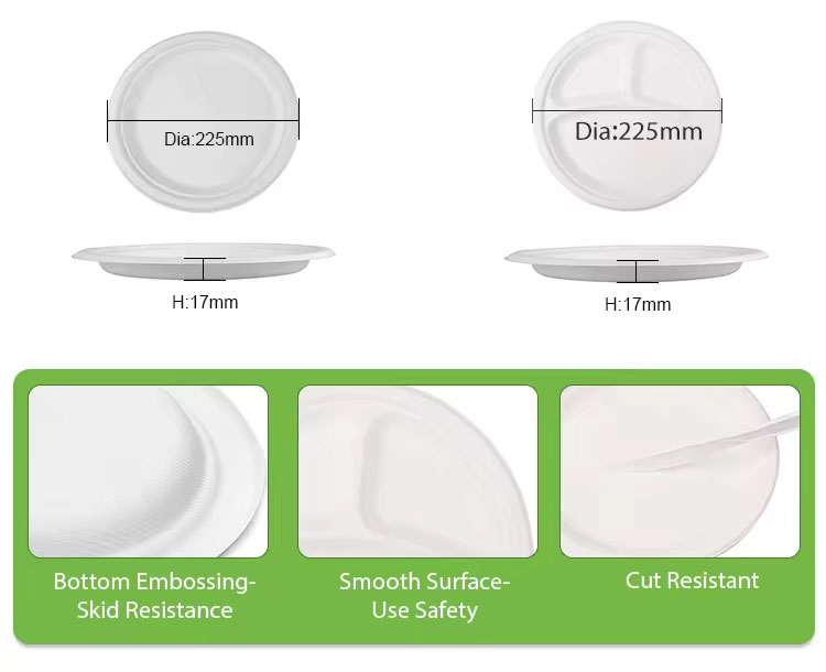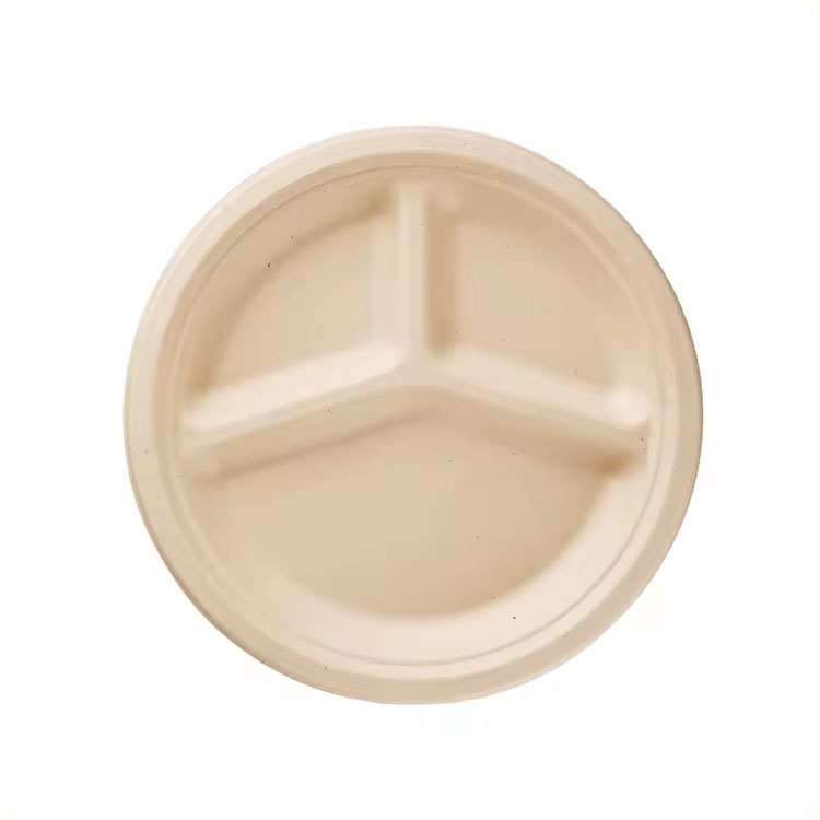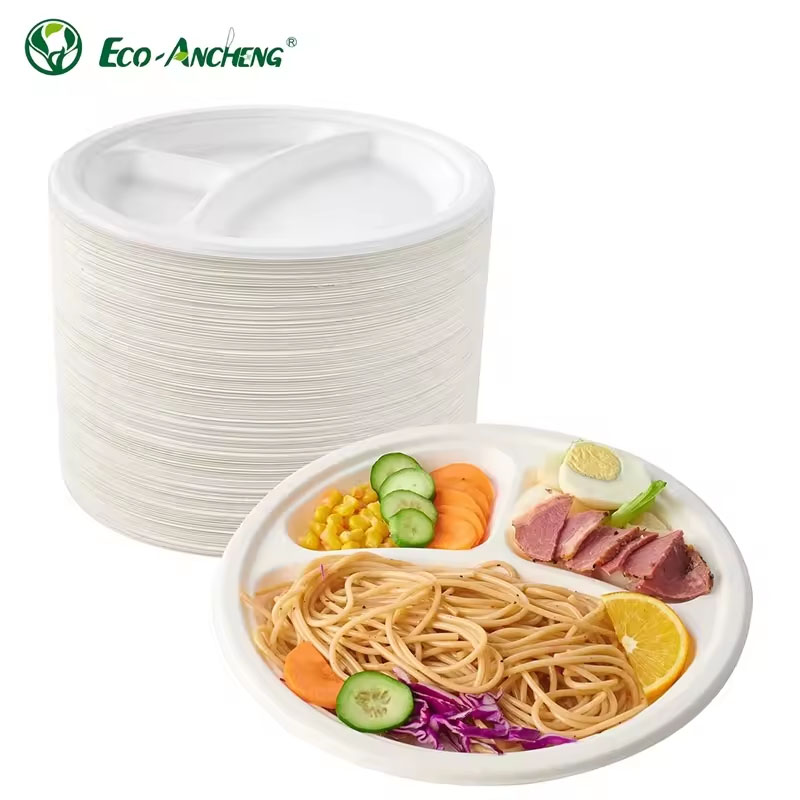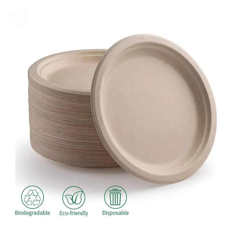 Restaurant Leakproof Compostable Sugarcane Round Pulp Plate Disposable Bagasse Plate