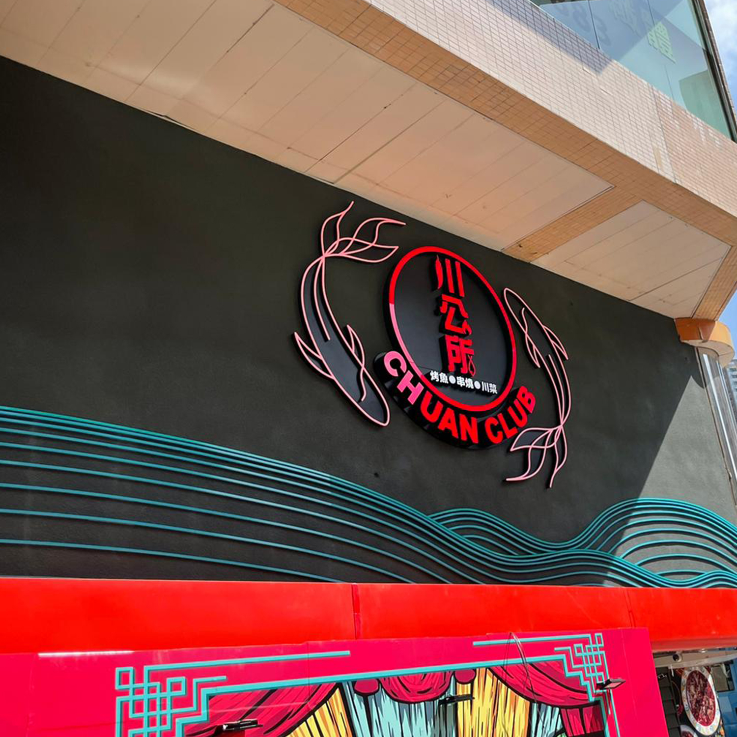 The main dish of this restaurant is Sichuan cuisine. The signboard combines the image of pepper and Fish with the signboard design. The overall color is red.