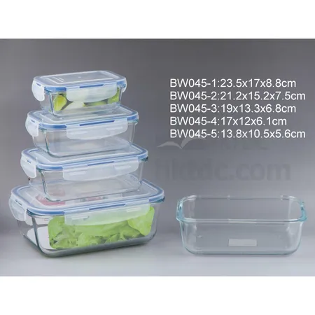Description: Retangular glass food preservation box with PP sealed lid