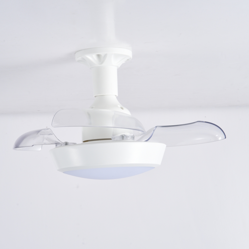 1. With remote control single white color Adjustable wind speed in 3 gears Light and Fan can work independently
