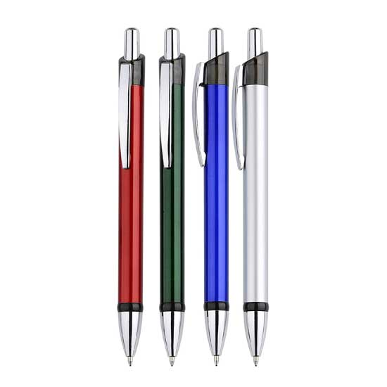 This retractable ball pen features a straight glossy barrel. The top button and pen tip showcase exquisite mirror finishing. This ball pen makes an economical and practical corporate gift.