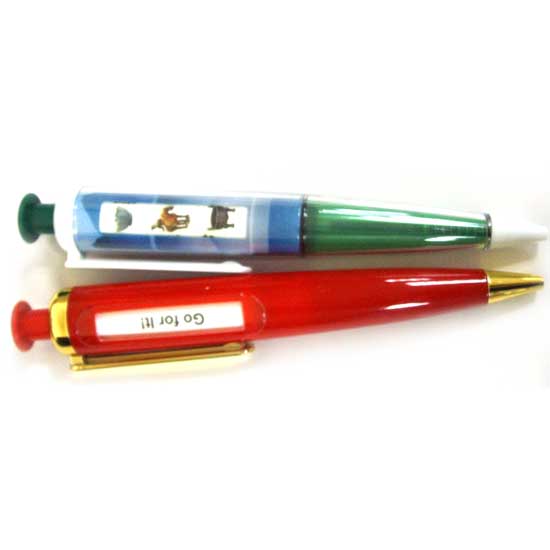 The fat-barrel ball pen is specially designed with a window to display colorful pictures or inspiring words. By pressing the ball pen cap, you can enjoy as many as 18 different patterns. The novel and stylish ball pen makes a great stationery for children.
