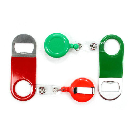 This bottle opener is made of rubber-coated stainless steel for a long-lasting quality. It is attached to a 58cm retractable string with a clip for your convenient use. This excellent bottle opener is great for bars, restaurants, etc.