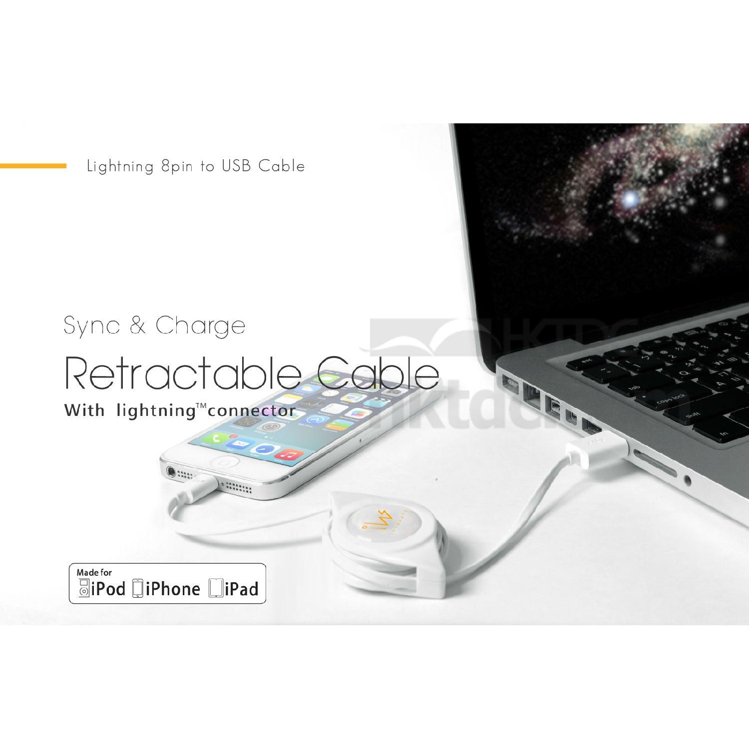Featured here is a lightning to USB cable with a retractable design. It offers four length sections to suit your needs. This convenient cable is suitable for iPhone 6s, iPhone 6s Plus, iPhone and iPad Pro.