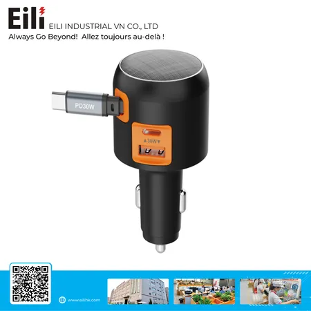 The 60W Car Charger features a built-in retractable USB-C cable along with extra USB-C and USB-A ports, delivering fast charging for multiple devices while keeping your car space organized. The retractable cable prevents tangling, saves space, and enhances portability. With intelligent power distribution and PPS support, it ensures safe and efficient charging for smartphones, tablets, and other USB devices on the go.