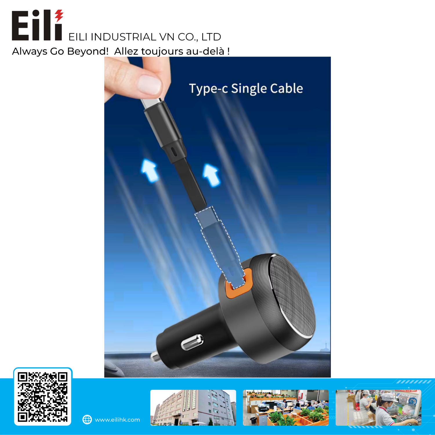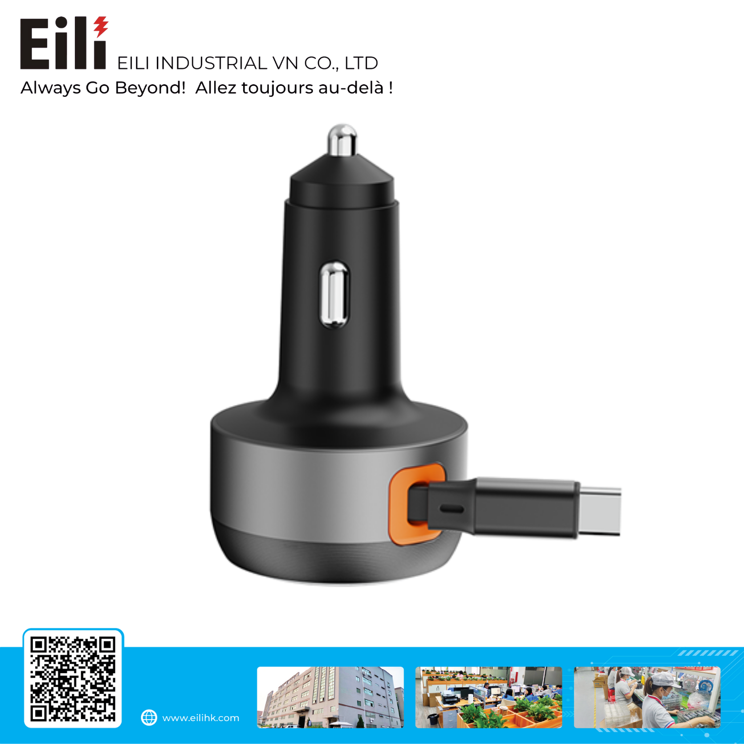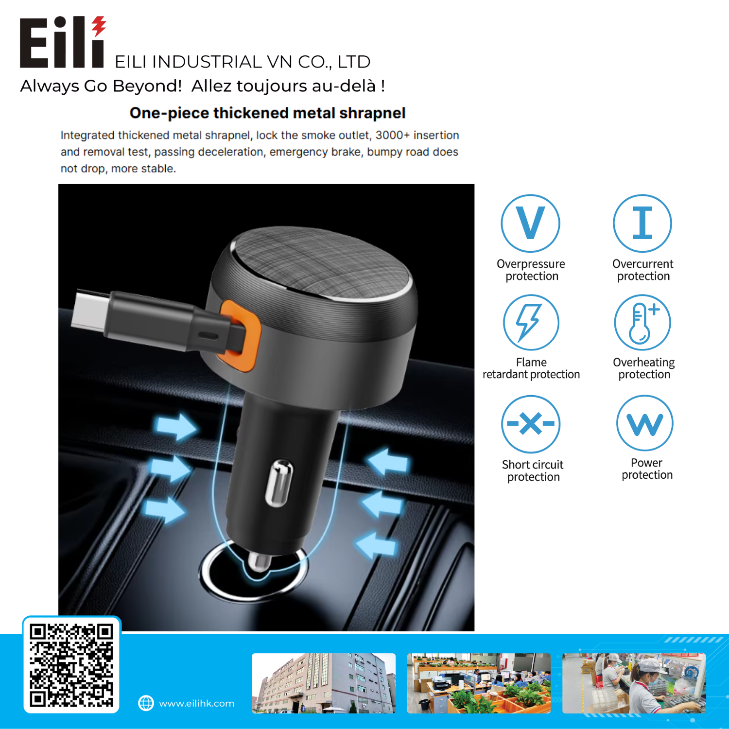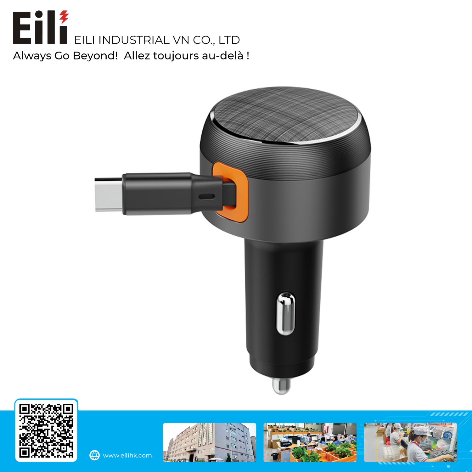 The 30W Car Charger features a built-in retractable USB-C cable, providing fast and convenient charging while keeping your car tidy. Its retractable cable design prevents tangling, saves space, and makes it easy to store when not in use. Compact and lightweight, this charger is perfect for smartphones, tablets, and other USB devices on the go.