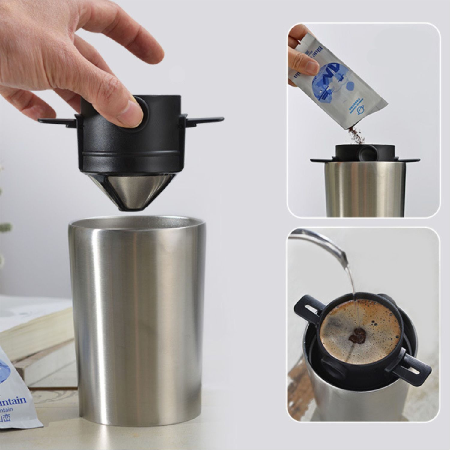 Excellent Portable Design: Unique design of bracket foldable keep the size compact and easy to carry. Unfold to make coffee, with the heat resistant handle. Fold for storage in the cup. Perfectly fit for traveling, camping, office, home time.