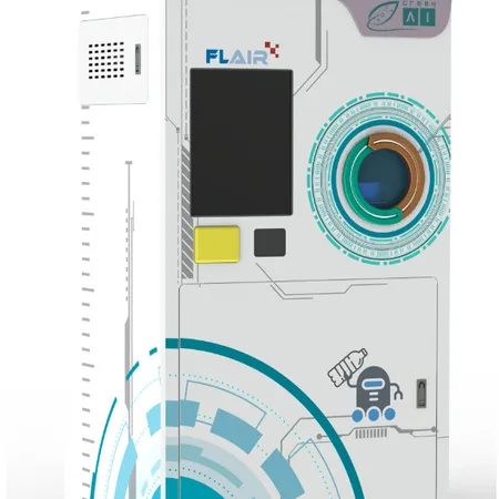 Reverse vending machine (RVM) allows user to insert a used or empty glass bottle, plastic bottle, or aluminum can in exchange for a reward.
