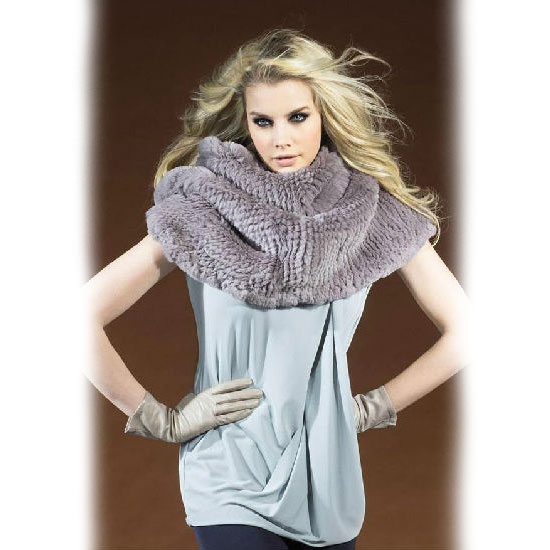 This is a Rex rabbit fur scarf with a stylish and luxurious design. It is finely made for a soft and comfortable touch. This top-quality scarf is a great choice for fashionable ladies.
