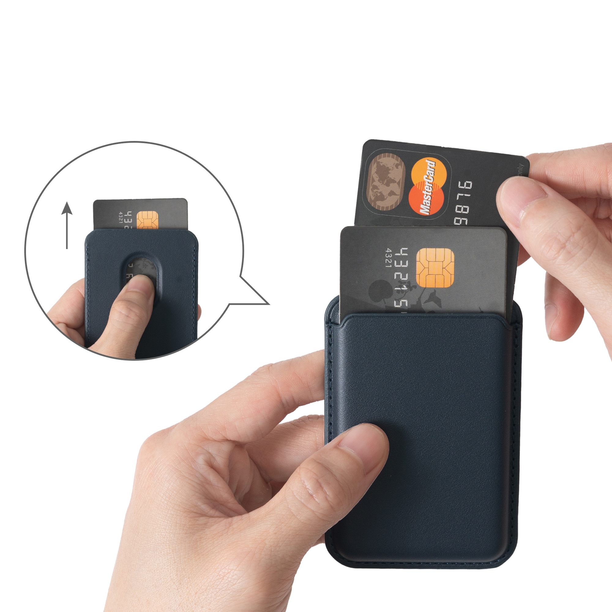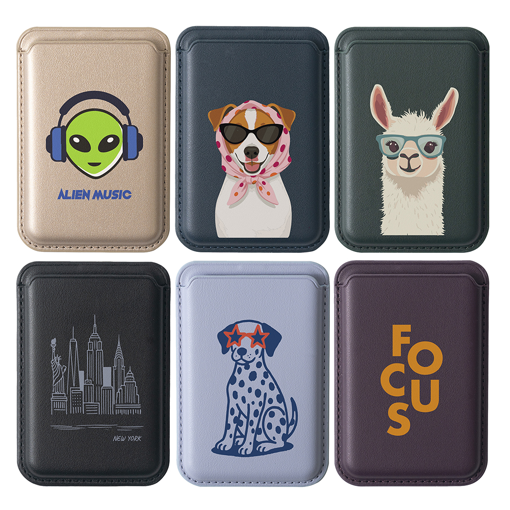 Designed for effortless attachment and a secure hold, it snaps onto your phone with strong embedded magnets. It holds up to two cards, while the smart thumb slot on the back lets you slide them out in one smooth motion for quick, convenient access. Perfect for personalized artwork, custom printing, and standout logo branding.
