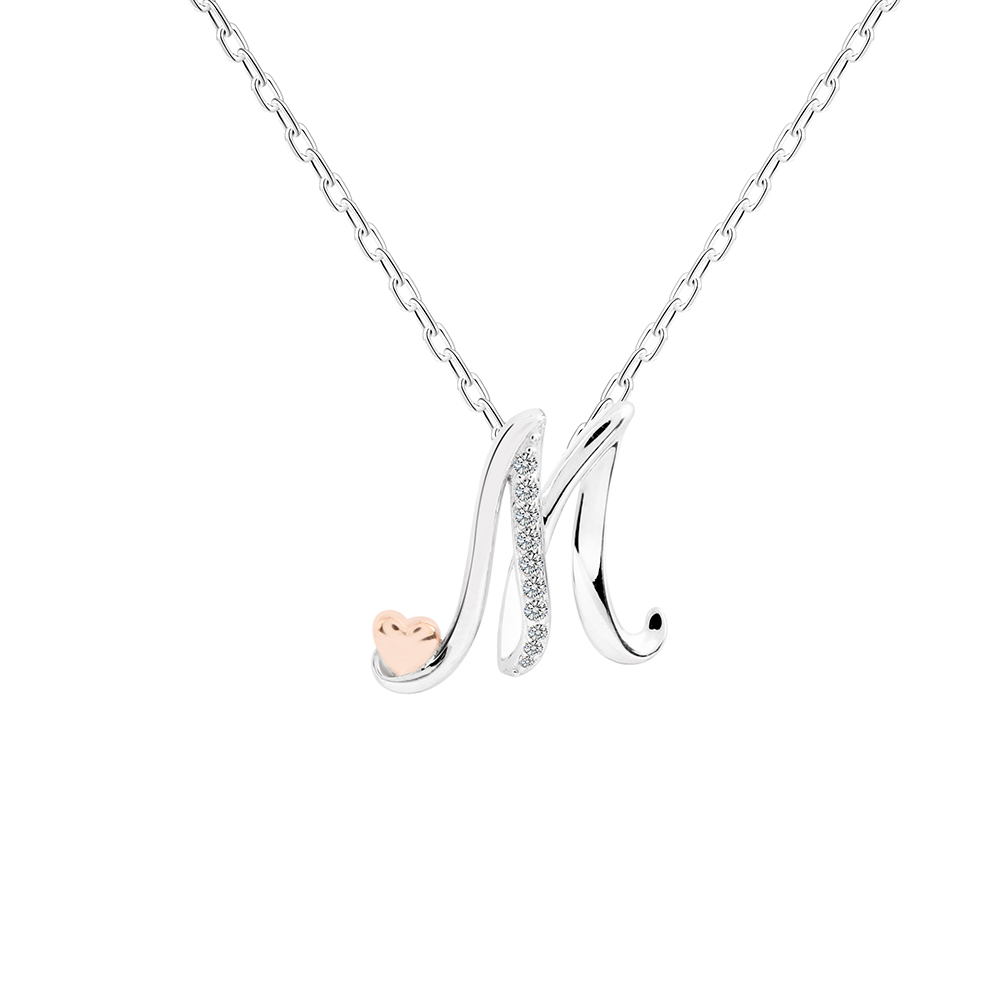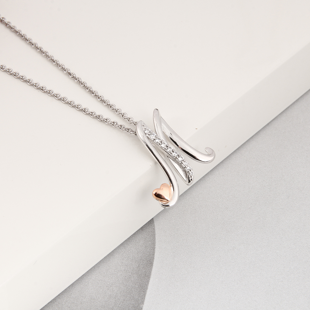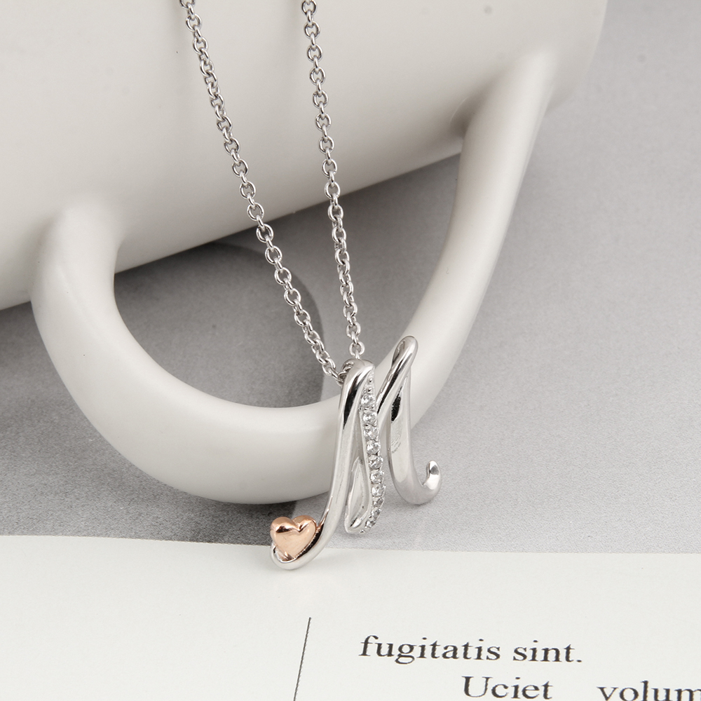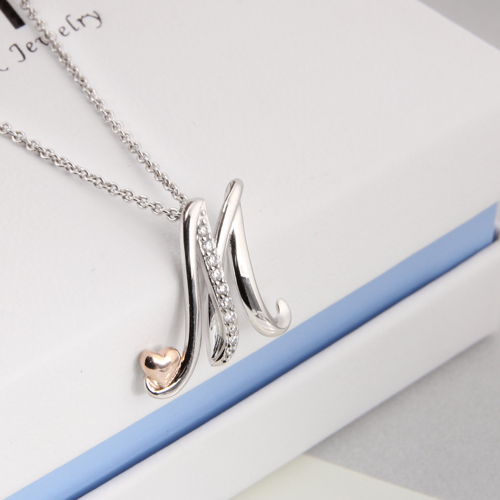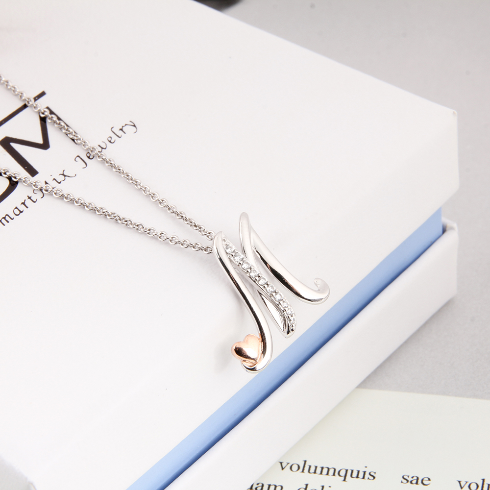 Rhodium Plated 925 Sterling Silver Initial A-Z Letter Charm Rose Gold Heart Alphabet Necklace