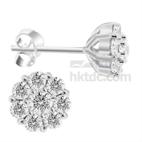 Rhodium Plated Silver Earring with Premium Round Brilliant Cubic