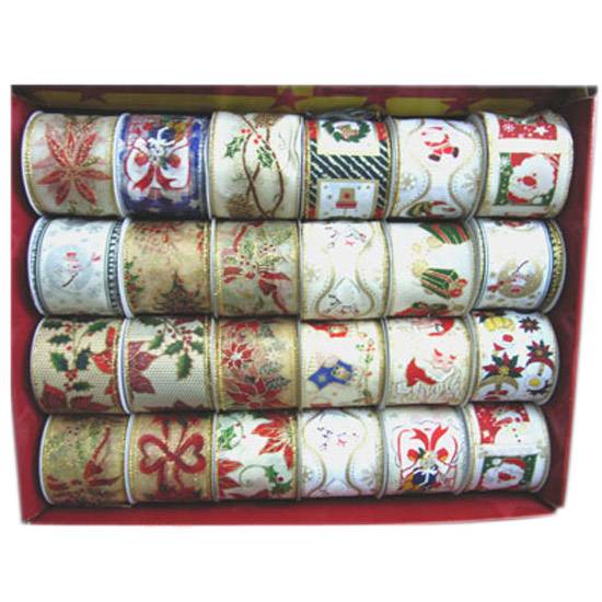The featured ribbon set is a must have for the Christmas seasons. The ribbon set includes 24 rolls of ribbons each in different Christmas designs. This ribbon set offers you a wide range of choices, making sure the right ribbons go well with your special present.